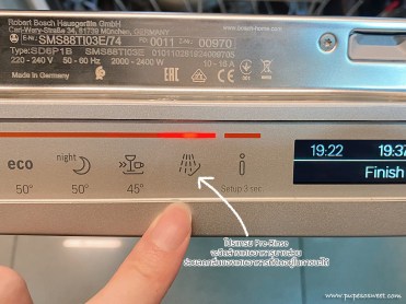 เครื่องล้างจาน BOSCH ใช้งานง่ายมากครับ แค่กวาดเศษอาหารชิ้นใหญ่ ๆ ทิ้งลงถังขยะ (หรือในกรณีของปูเป้คือทิ้งลงในเครื่องทำปุ๋ยจากเศษอาหาร) วางจานลงในเครื่องอย่างถูกวิธีเป็นสิ่งที่สำคัญมาก เพราะจานชามจะออกมาสะอาดแค่ไหน และอบได้แห้งสนิทแค่ไหน นอกจากประสิทธิภาพของเครื่องล้างจานแล้ว ก็อยู่ที่การวางจานชามอย่างถูกต้องครับ ซึ่งปูเป้จะให้รายละเอียดเพิ่มเติมด้านในส่วนต่อไปของบทความ